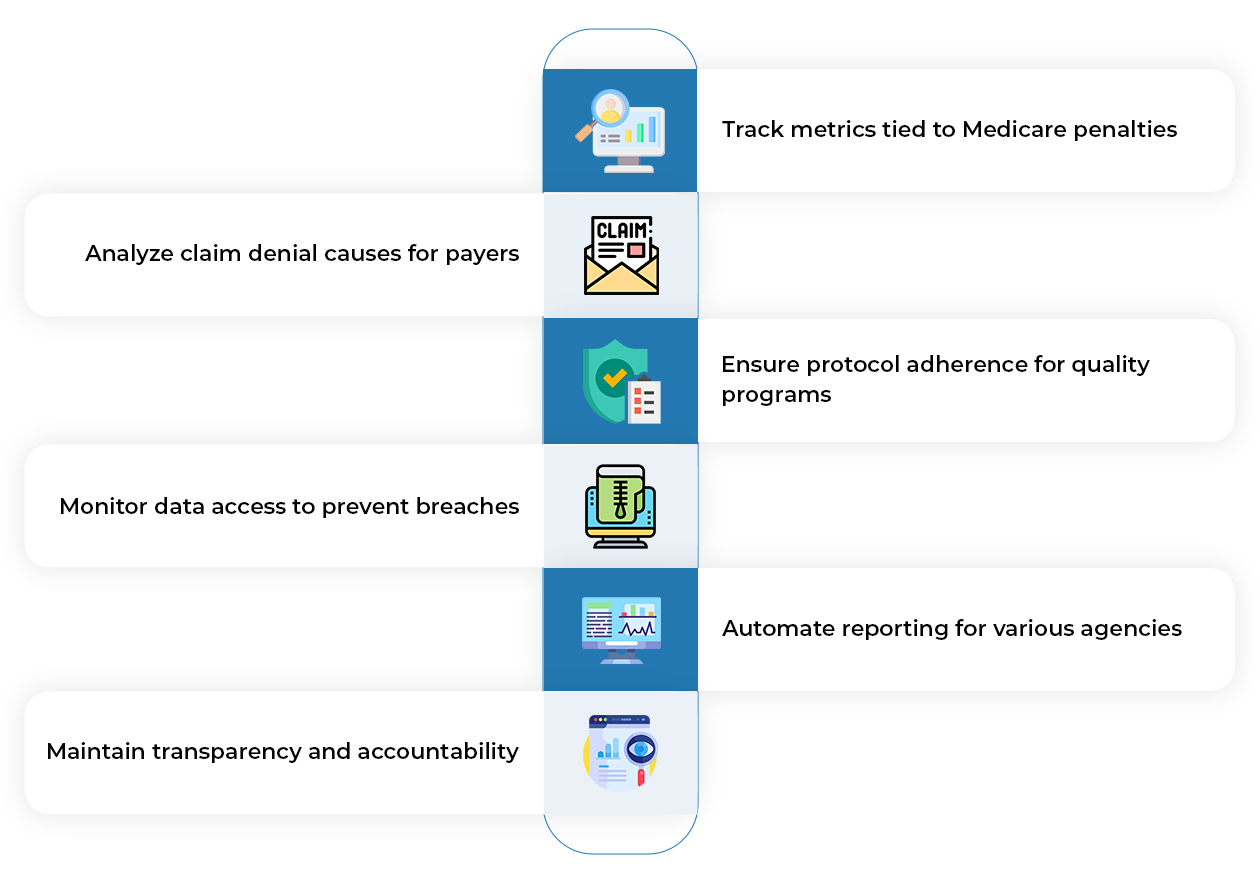 Get 30-min Free DemoAvoid penalties by monitoring compliance with standards like HIPAA, ACO metrics etc. Our compliance dashboards allow you to:
